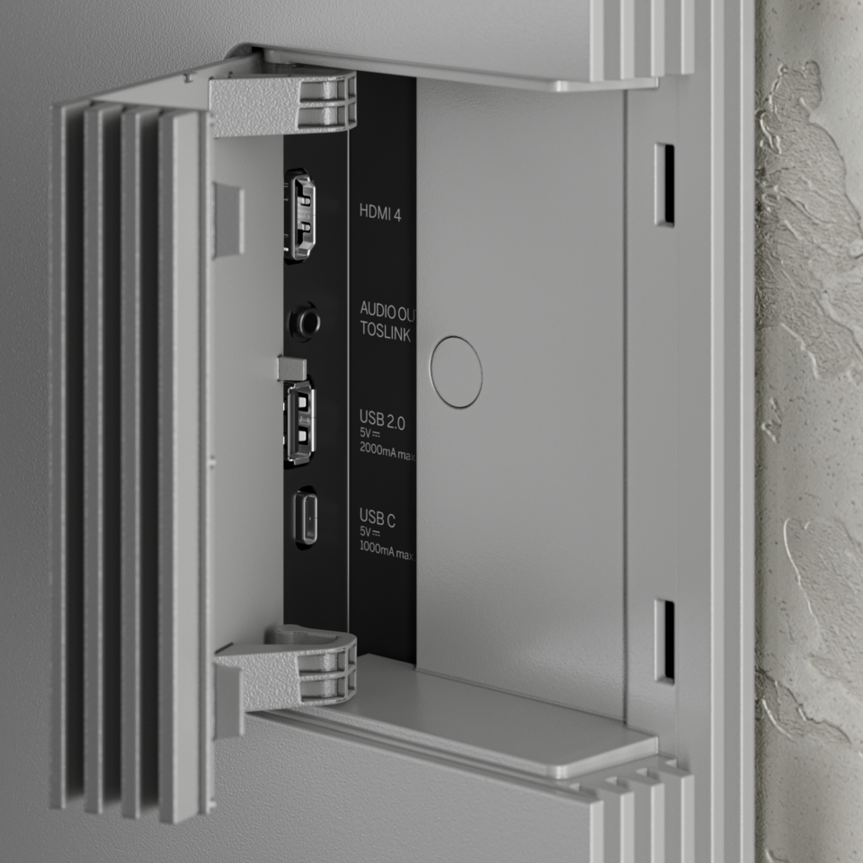 Новый Loewe stellar — это телевизор с настоящим дизайнерским подходом от собственной студии Loewe, занимающейся дизайном и инновациями. Он создан с использованием отборных натуральных материалов, таких как рамка дисплея из матового алюминия ромбовидной формы, изящная решетка динамика из акустической ткани или окрашенного распылением металла и задняя панель дисплея из натурального бетона или алюминия. Все соединения скрыты, а все кабели аккуратно уложены с помощью встроенной системы управления кабелями и кабельных заглушек в светло-серой задней панели, а также бокового AV-туннеля для больших экранов.